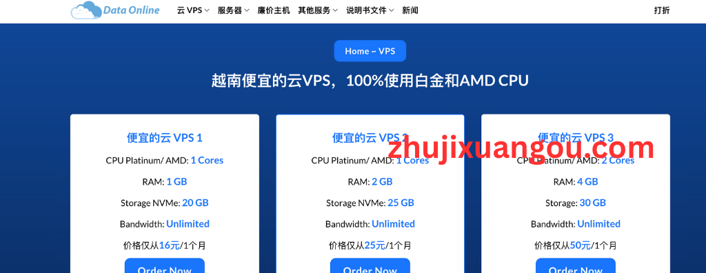 DataOnline是越南本地知名的云计算与数据中心服务提供商,主营 Cloud VPS、独立服务器(Dedicated Server)、机柜托管(Colocation) 等。特别是,可以大量购买 IP(/24、/23、/22 等),随物理服务器一起购买,价格从$1.2/1IP/每月起。网站支持中文界面和英文界面,非常方便海外用户注册与使用。